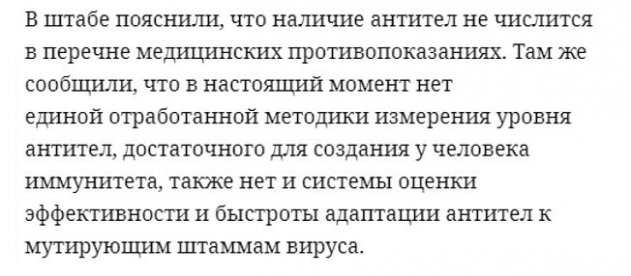 Ни вы сами ни ваши антитела никого не интересуют. Право на существование научного факта о том, что человек здоровый имеет сильный иммунитет, а если переболел на клеточном уровне может запоминаться вирус, в том числе мутированный, это тоже неинтересно. То есть власти искренне считают, что если вы всегда ели спелый банан, а завтра увидите на прилавке банан зелёный, то вы явно не сможете понять, что это тоже банан. А именно по этому принципу и работает "клеточная память здорового человека" (речь идёт о Т-клеточном ответе. Подробнее можно прочитать здесь). Но, кажется, есть там, сверху, уверенность, что мы совсем плохи…