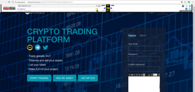Обратите внимание на смену вывески на “Crypto Trading Platform” Версия сайта LAToken от 31 декабря 2017 годаhttp://web.archive.org/web/20180131132553/https://latoken.com/