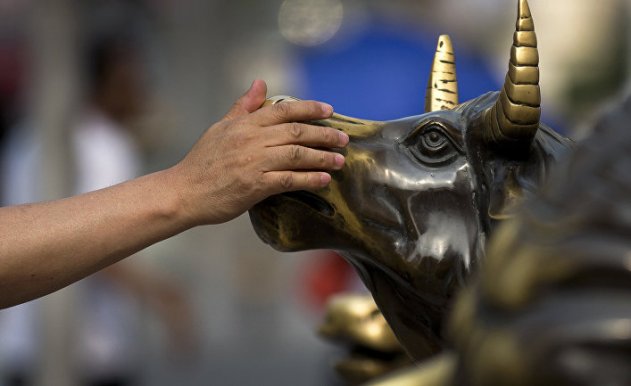 © AP Photo, Andy WongСтатуя быка у входа в банк в Пекине