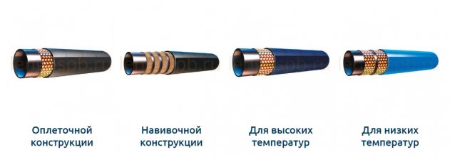 - Низкотемпературные (до - 40 °С) и морозостойкие (до - 57 °С) РВД.