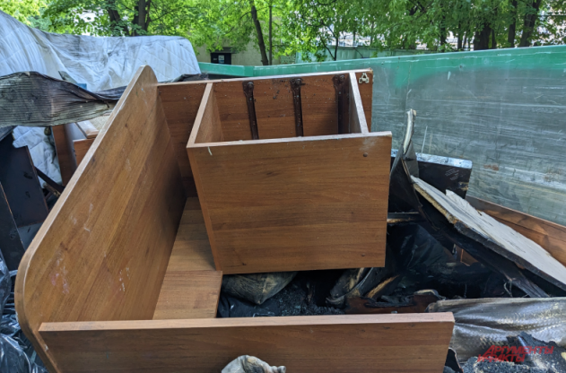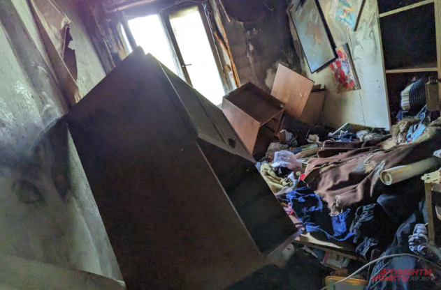 Мебель, сантехника и остатки обоев на стенах сильно обгорели, но даже это не мешает разглядеть, какое здесь все старое. Как говорят соседи, семью, которая жила в квартире, сложно назвать благополучной.
