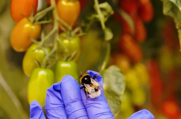 Во время разговора мы то и дело поглядываем на шмелей, которые, не покладая крыльев, опыляют цветки томатов. Прошли времена, когда шмелей везли в наши теплицы из какого-нибудь Израиля. Теперь они российские — шмелиные семейства на Ставрополье привозят из Воронежской области. И трудятся они тут на славу — завязываемость у помидоров 100%-ная на протяжении всего периода созревания.