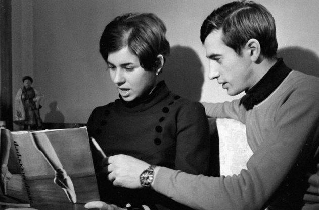 1970 г. фигуристы Людмила Пахомова и Александр Горшков изучают литературу по балету.
