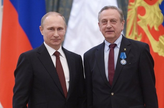 24 марта 2014 г. президент России Владимир Путин и президент Федерации фигурного катания на коньках России Александр Горшков на церемонии вручения государственных наград РФ в Кремле.