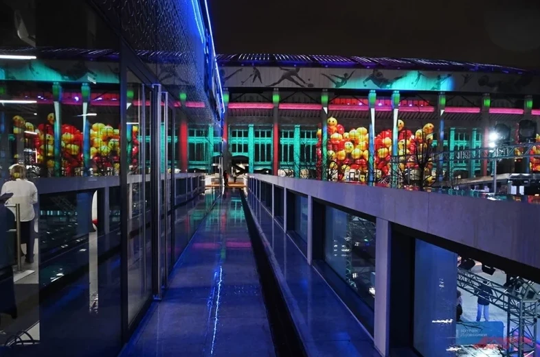 Во время вечерних сеансов сам стадион «Лужники» также становится украшением.