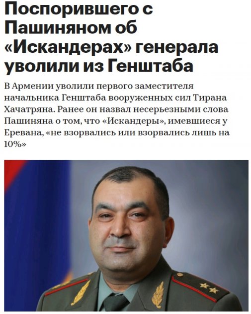 В свою очередь, эта находка заставляет по иному взглянуть на слова премьер-министра Армении Никола Пашиняна о том, что ОТРК Искандер показали себя не эффективными.
