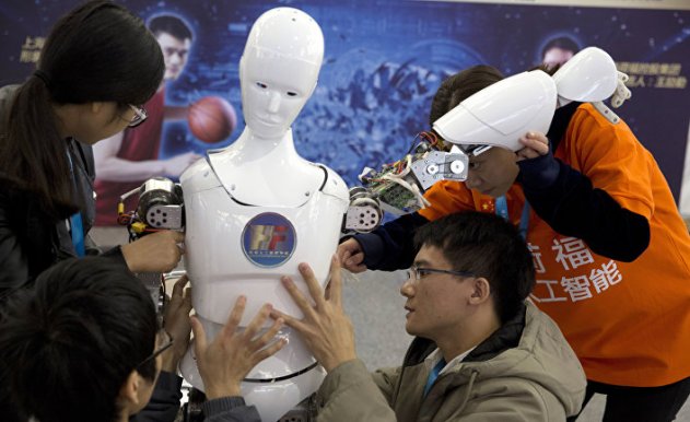 © AP Photo, Ng Han GuanКитайские студенты собирают робота на всемирной конференции роботов в Пекине, КНР