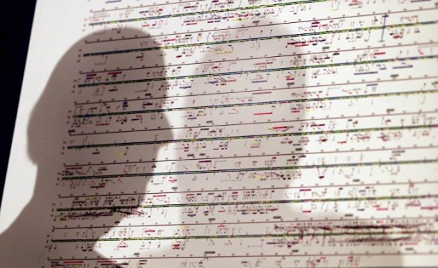 © AP Photo, Ron EdmondТень генетика Крейга Вентера на карте генома человека