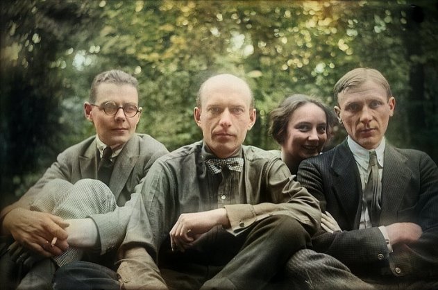 Булгаков и Белозерская (крайние справа) в кругу друзей.