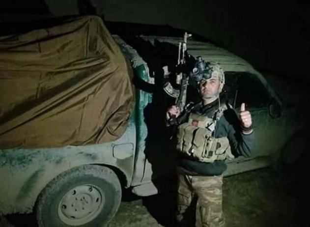 Афганский спецназовец с отбитым у боевиков пикапом в пр. Газни