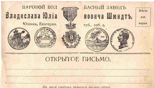 Старая рекламная продукция притягивает как магнит. В ней есть необъяснимое изящество. Даже если рекламировались какие-то специфические вещи – все равно старая реклама манит. Рекламировали свой бизнес жители Юзовки в специальных технических изданиях, справочниках, на почтовых карточках, официальных бланках и вывесках.