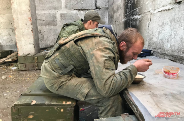 Обычный распорядок дня у бойцов на позициях практически ничем не отличается от людей на гражданке, рассказывает боец с позывным Комар. «Встаем в шесть утра. Завтракаем. Дальше все зависит от поставленных перед нами боевых задача. Бывают очень интенсивные дни в плане боевой работы, бывает, что более-менее тихо. По разному», — отмечает он.