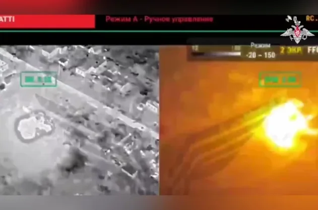 Разрушение пункта управления БПЛА дальнего действия ВСУ с применением дрона «Герань-2» и барражирующего боеприпаса «Ланцет».