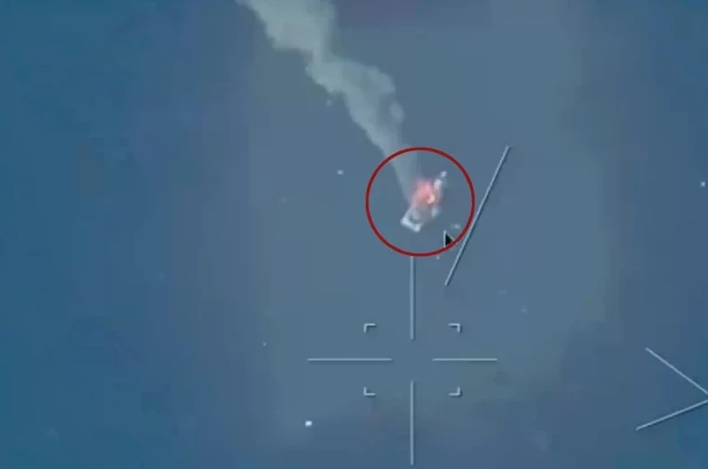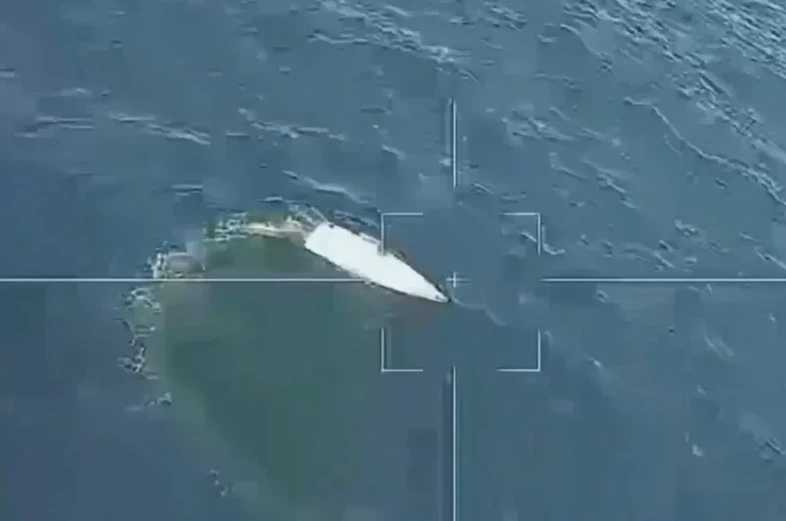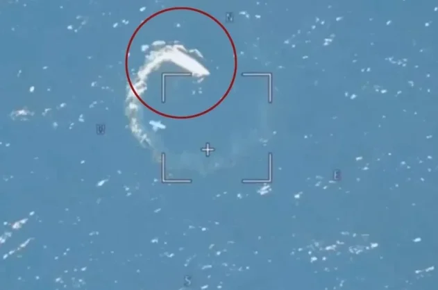 На кадрах видно, как российские военные ведут стрельбу по приближающемуся безэкипажному катеру.