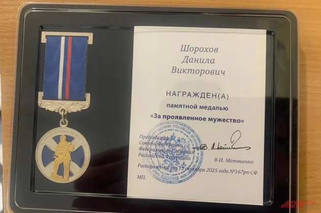 Данил получил медаль Совета Федерации «За проявленное мужество». Фото: Личный архив