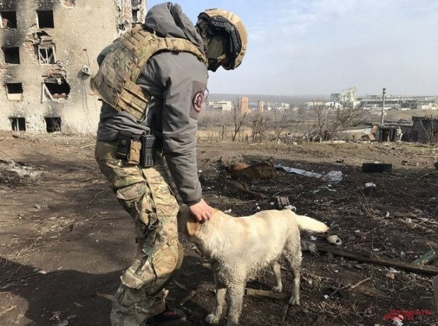 Местный любимец, живущий рядом с бойцами Вагнера.