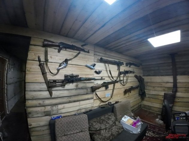 В соседнем бойцы сделали стену с трофейным оружием, которое было захвачено во время боев.