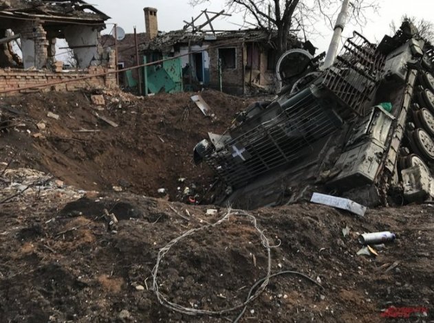 Остатки подбитой бронетехники на улицах Артемовска.