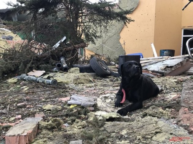 Еще один брошенный пес, что прибился к нашим бойцам.